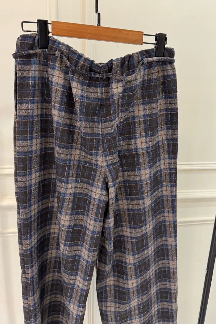 A55復古抽繩格紋褲