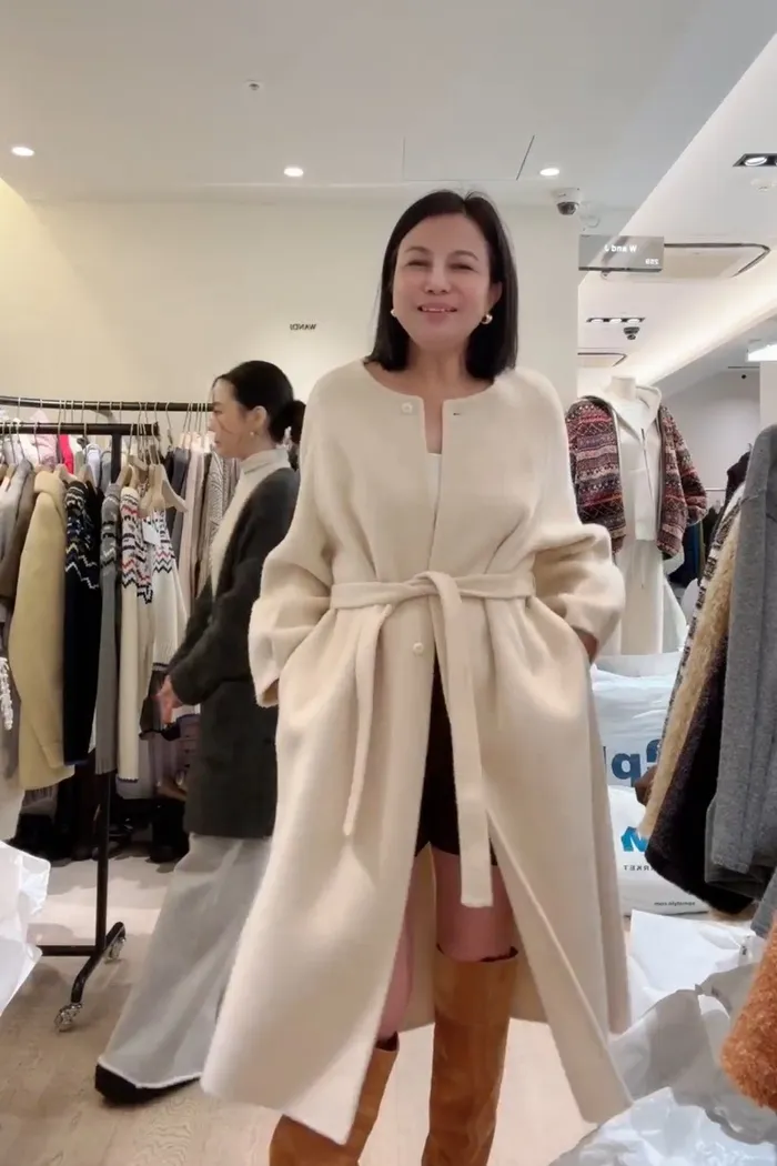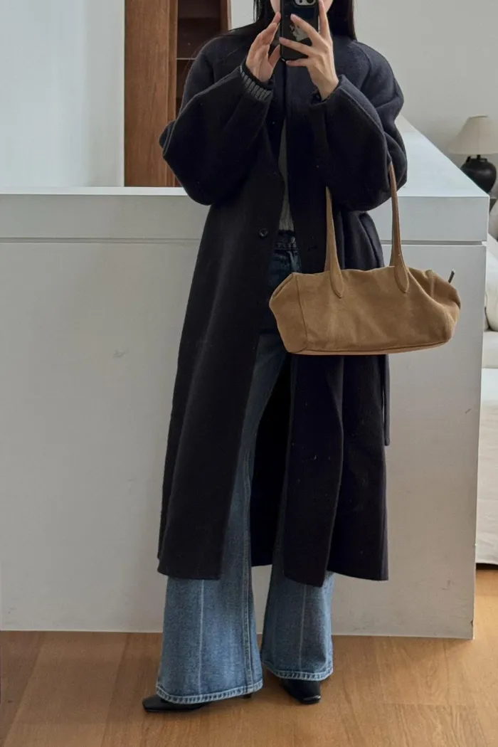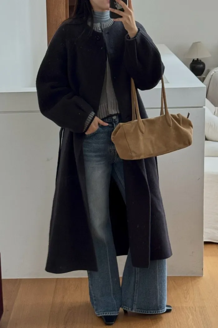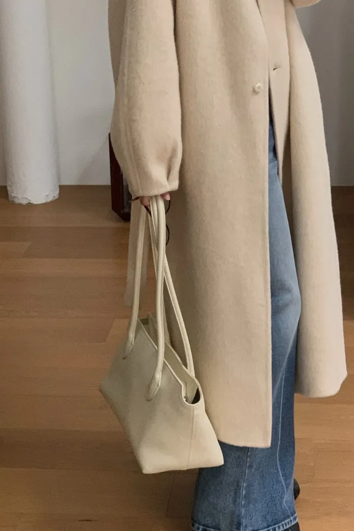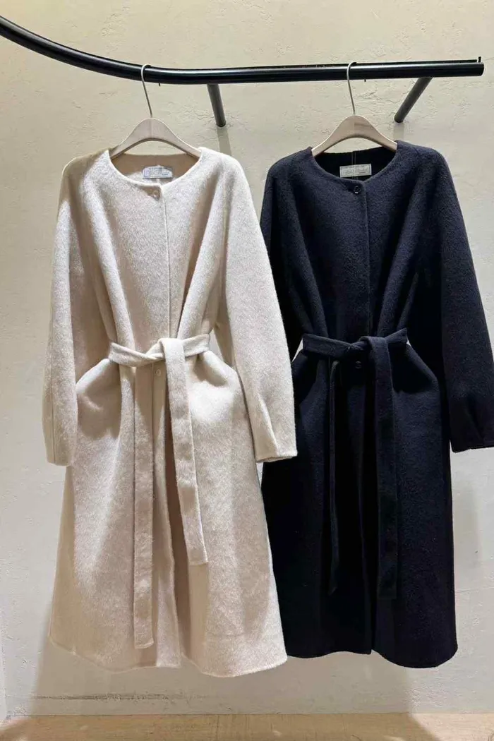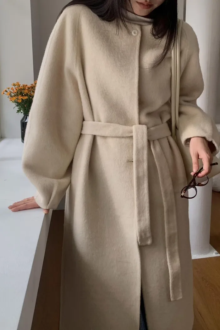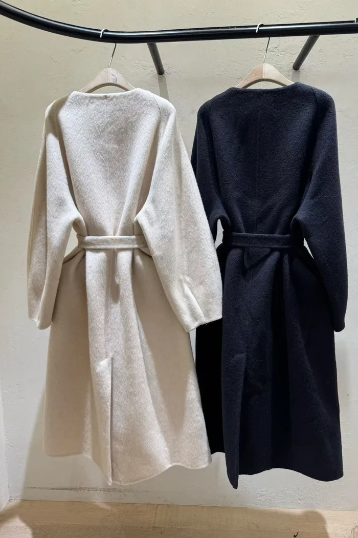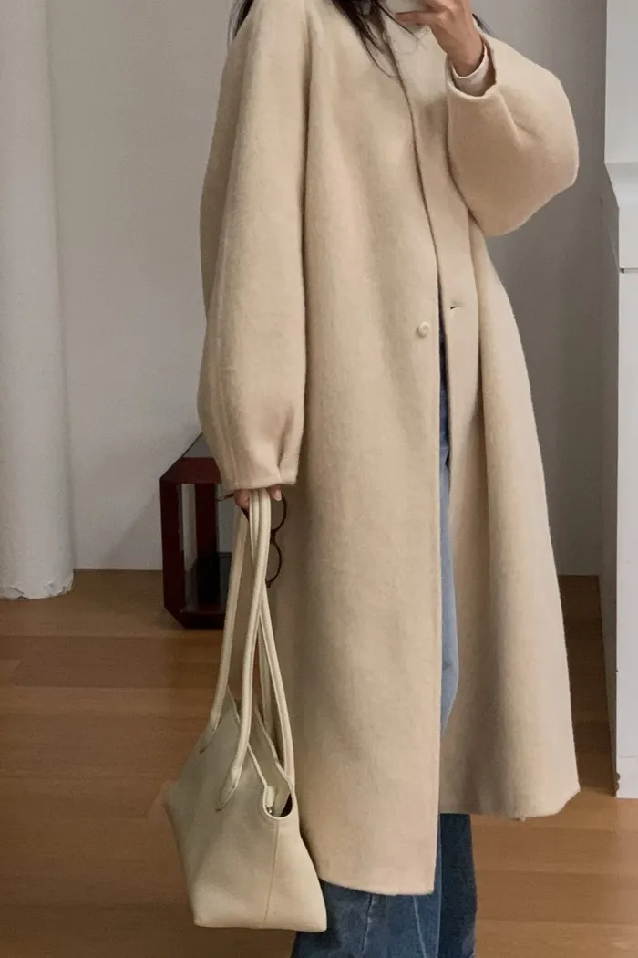 A55無領附帶手工輕羊毛大衣