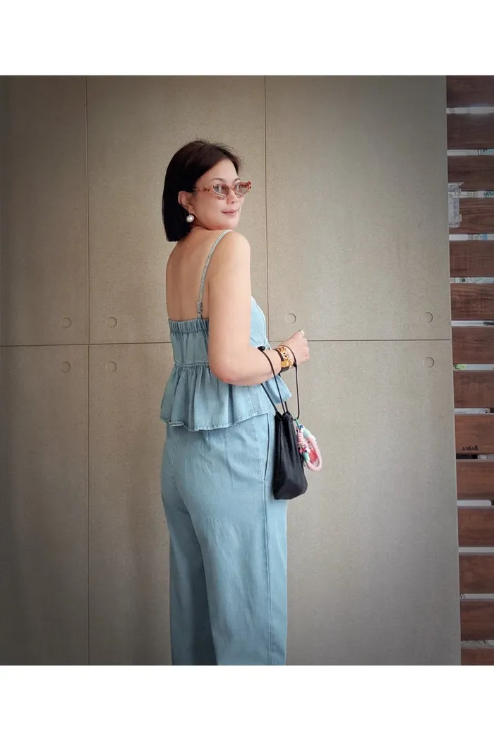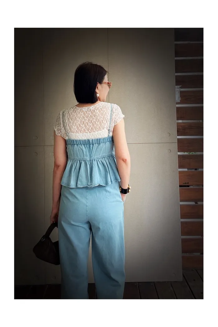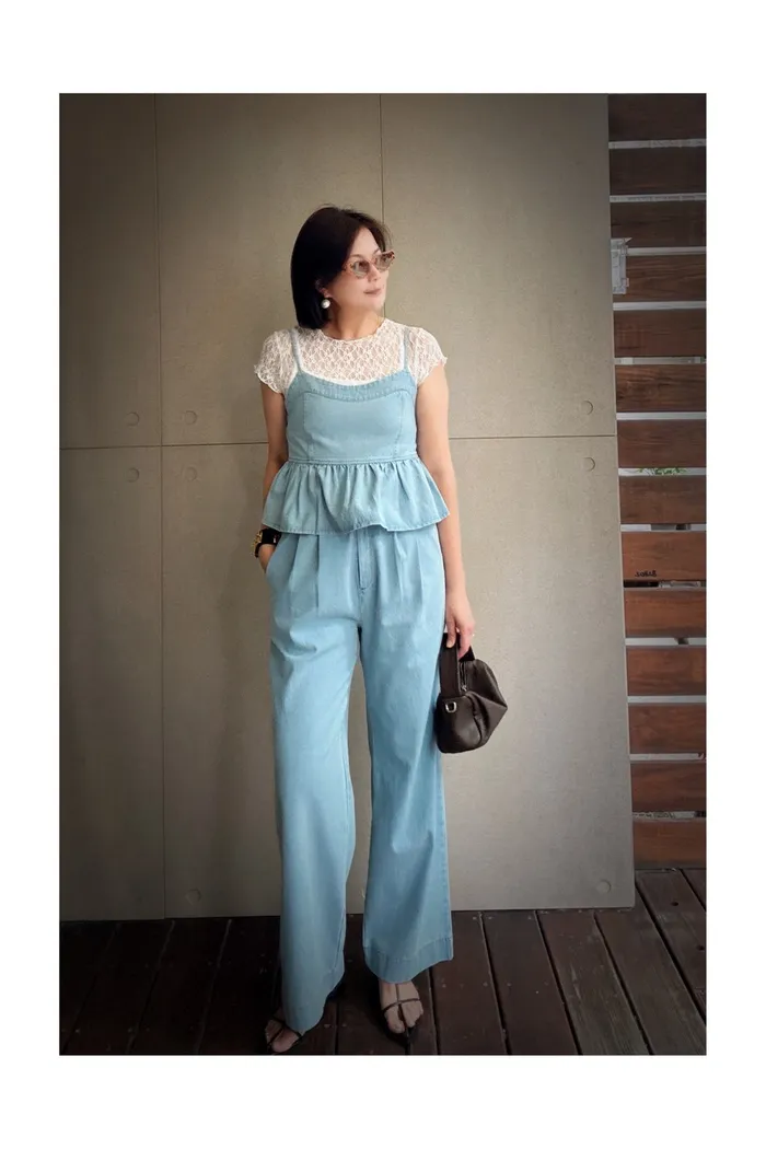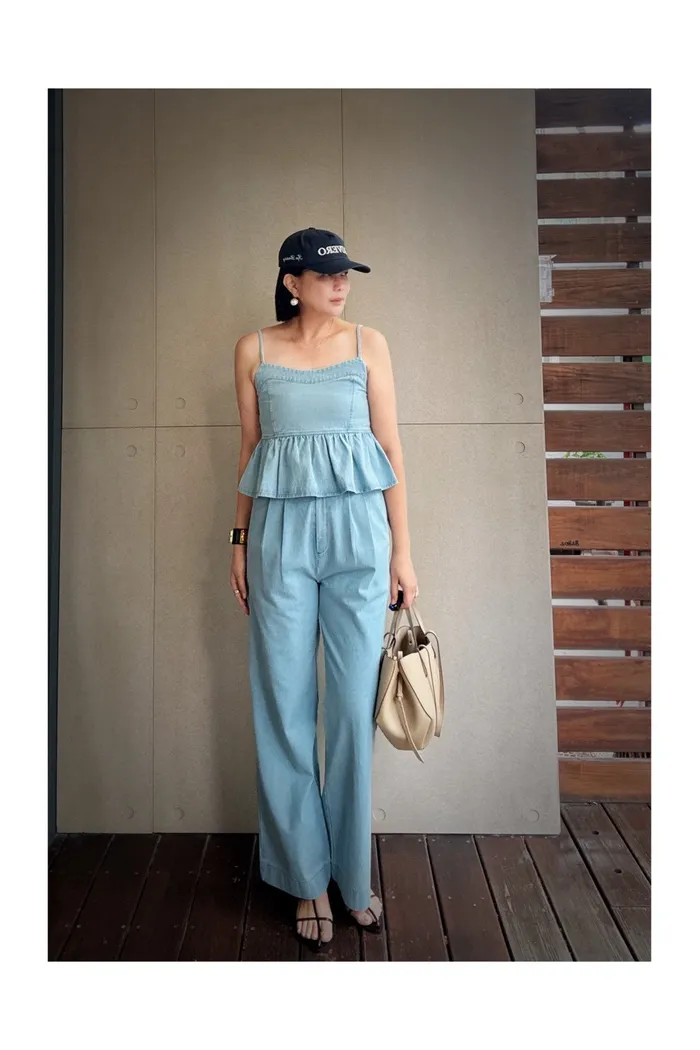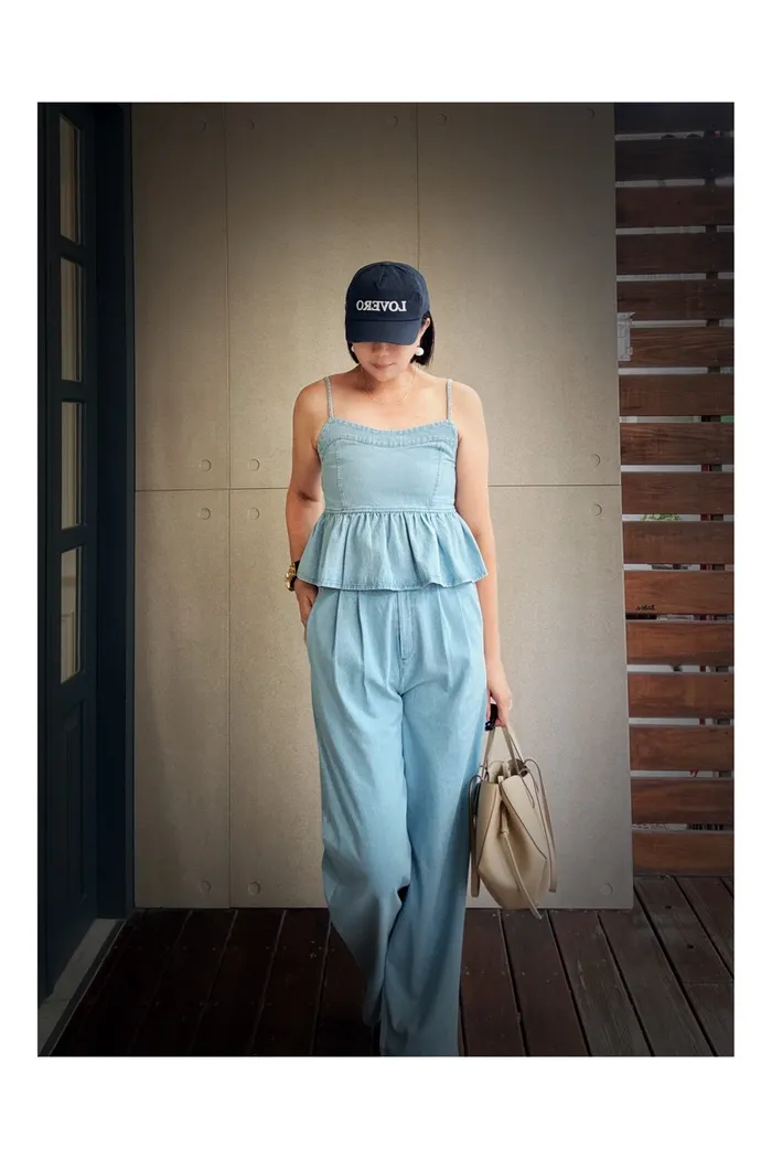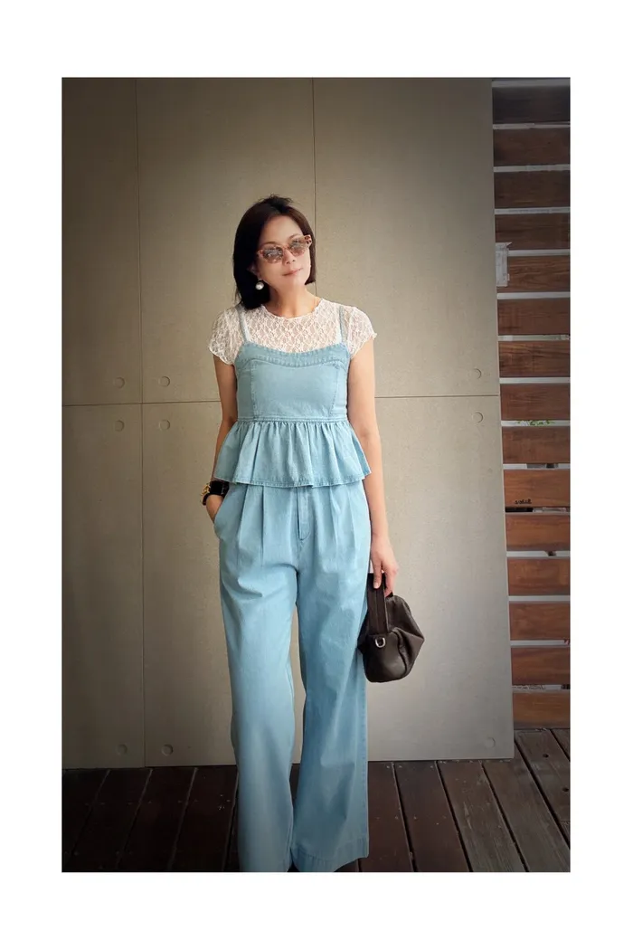 A55細帶牛仔背心+褲