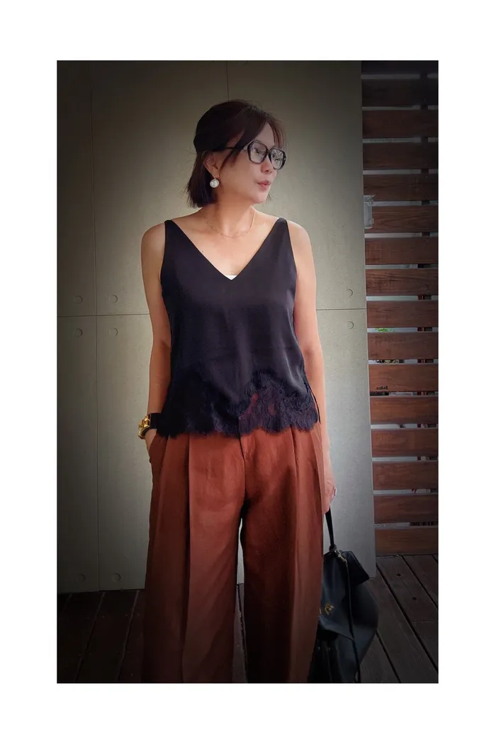 A55下蕾絲緞背心